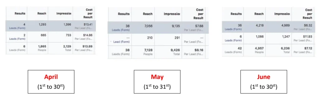 The main challenge for this account was to generate leads with the low Ad Spent of $6/day. Another challenge for this account was to lower down the Cost per lead! Problems Earlier – Cost per Lead was higher with less number of leads!